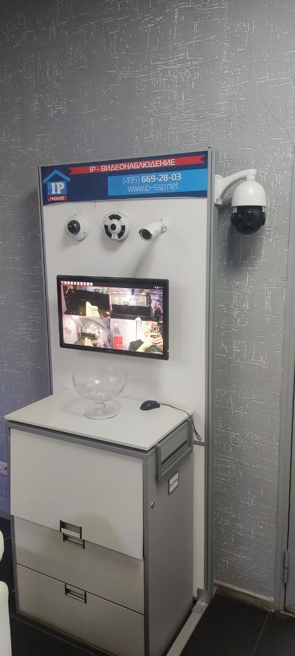 Система видеонаблюдения построена на основе гибридных купольных видеокамер высокого разрешения и видеорегистратора с возможностью доступа в сеть Интернет. Выполнена скрытая прокладка кабелей за подвесным потолком. Настроено локальное рабочее место, а также организован удаленный доступ на компьютер руководителя и через мобильное приложение.